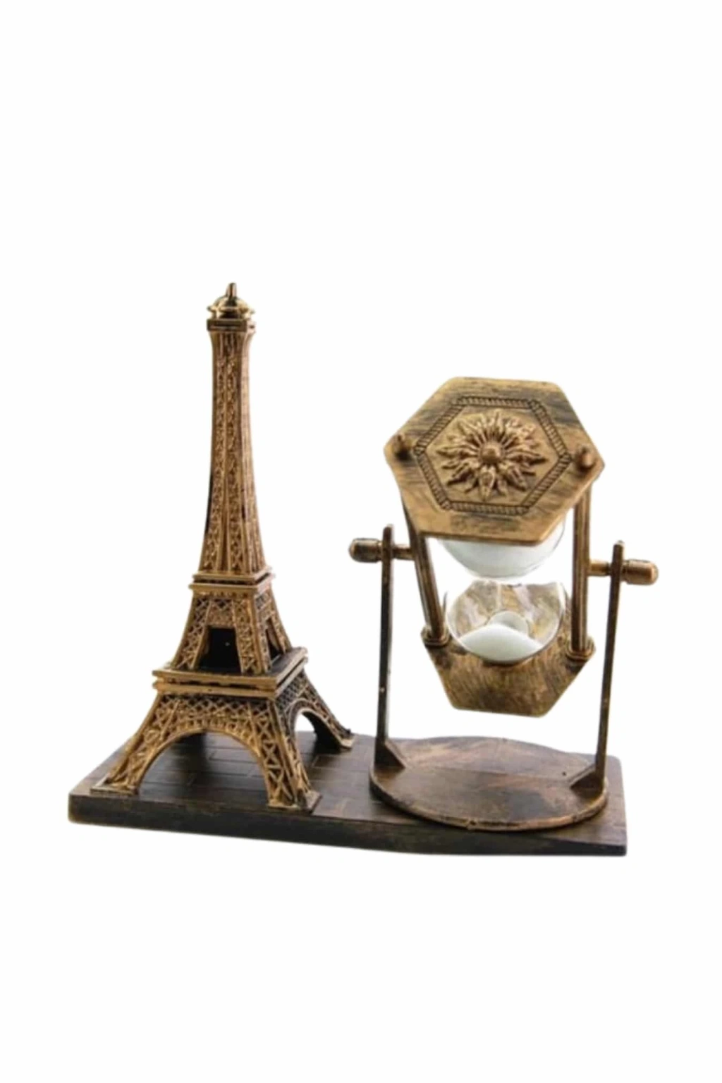 Klasik ve Şık Tasarımlı Demir Kule Kum SaatiZamansız bir dekorasyon öğesi olan Demir Kule Kum Saati, klasik tarzı ve estetik görünümü ile her mekâna sofistike bir dokunuş katar. Yüksek kaliteli ahşap ve metal malzemelerden üretilmiş olan bu zarif kum saati, hem dayanıklılığı hem de şık tasarımıyla dikkat çeker. Dekoratif bir obje olarak kullanılmasının yanı sıra zamanı ölçme işlevini de yerine getirir. Uzun yıllar boyunca sağlamlığını koruyacak şekilde üretilen bu kum saati, klasik dekorasyon severler için mükemmel bir seçimdir.