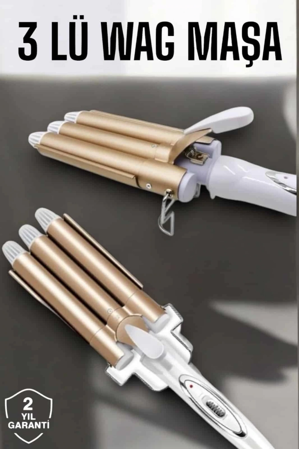 Saç maşası, tüm gün kalıcı bukleler için özel olarak tasarlanmıştır. 25 mm çapındaki üç namlulu seramik kaplama, saçlarınızı yıpratmadan şekillendirir ve sağlıklı bir görünüm kazandırır. PTC ısıtma sistemiyle donatılmış cihaz, yalnızca 30 saniyede ısınarak yoğun tempolu günlerde bile kolayca kullanıma hazır hale gelir. 170°C ve 220°C arasında değişen ayarlanabilir sıcaklık seviyeleri, ince ve kalın telli saçlar için ideal ısıyı seçmenize olanak tanır. Ergonomik tutamaç, haşlanma önleyici tasarımı ve ısı yalıtımlı braketi sayesinde güvenli bir kullanım sunar. Altın rengi estetik tasarımı, cihazın şıklığını tamamlar ve onu günlük bakım rutininizin vazgeçilmez bir parçası haline getirir.
