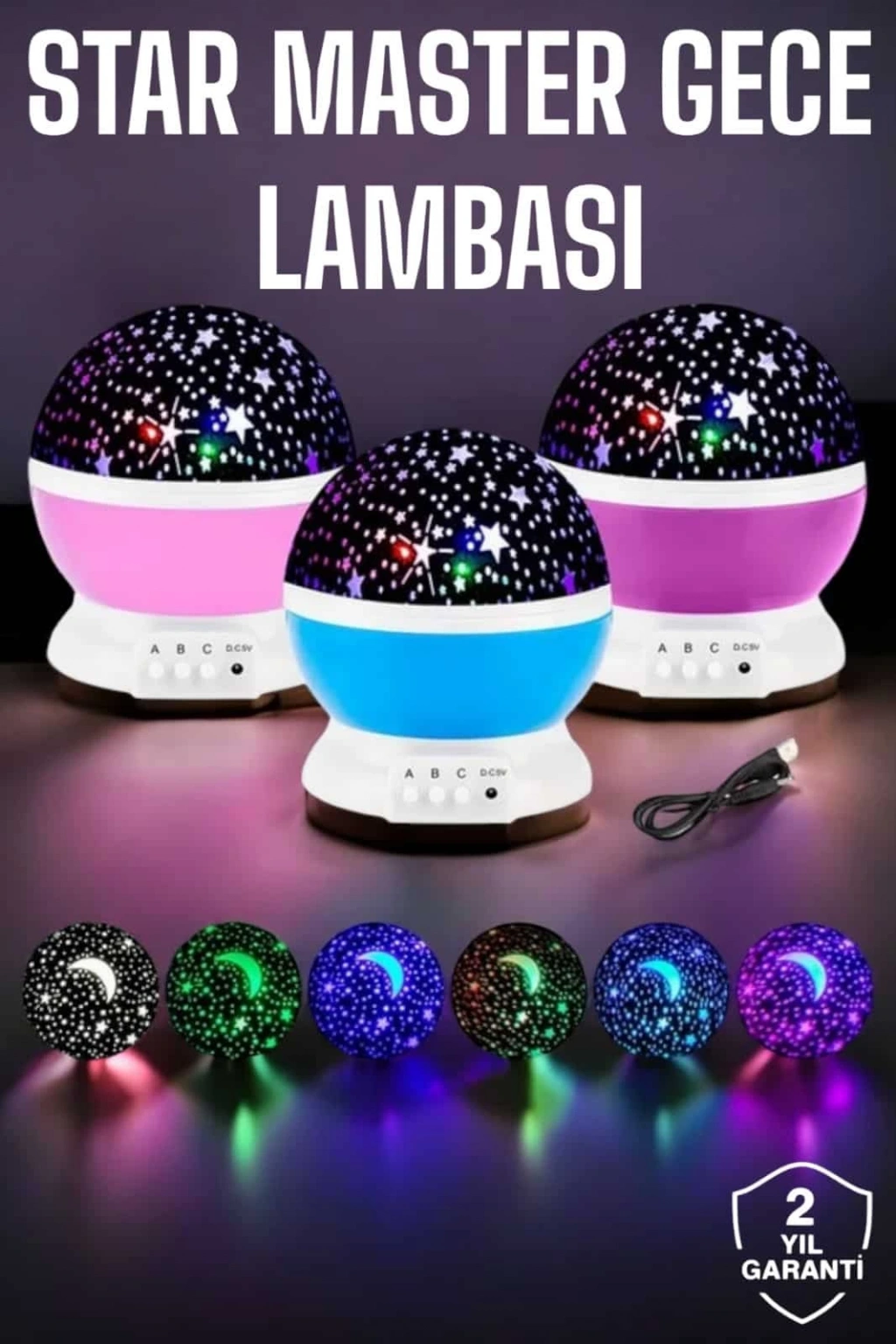 Yıldızlı Gökyüzü Projeksiyon Gece Lambası, evdeki her köşeye büyülü bir hava katmak için mükemmel bir üründür. Mavi ve mor ışıkların döner yapısı, tavanınıza büyüleyici bir şekilde yıldızlar, gezegenler ve ayı yansıtarak eşsiz bir gece manzarası sunar. Özellikle çocuklar için harika bir gece lambası olan Star Master, karanlıktan korkan çocukların daha rahat uyumasını sağlar. Gözleri rahatsız etmeyen yumuşak ışığı, gece boyunca sakin bir uyku ortamı oluşturur. Ayrıca, ışığın seviyesini ve rengini ayarlayabileceğiniz fonksiyonlarla, odanızda tam istediğiniz atmosferi oluşturabilirsiniz. Dönen yapısı sayesinde tavanınıza hareketli yıldızlar ve gezegenler yansıtarak her an farklı bir görsel deneyim yaşamanızı sağlar. Şeffaf üst kapak sayesinde ışık doğrudan tavana yansıtılabilir ya da farklı bir yönlendirilebilir. 4 adet AAA pil ile çalışan bu projeksiyon gece lambası, enerji verimli bir kullanım sağlar ve her yere kolayca taşınabilir. Star Master, sadece çocuklar için değil, aynı zamanda gece atmosferi yaratmak isteyen herkes için mükemmel bir tercihtir.