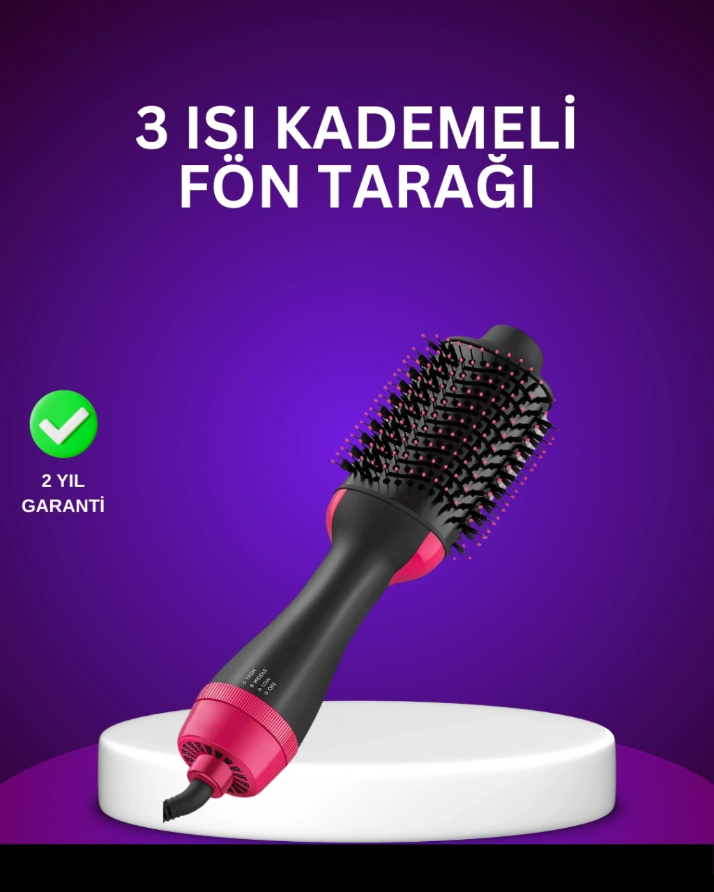 Profesyonel saç bakımını evinize taşıyan Premium 1200W Kurutmalı Saç Şekillendirici Fönlü Fırça, tek adımda kurutma ve şekillendirme kolaylığı sunar. Negatif iyon teknolojisi ile saçınızdaki elektriklenmeyi azaltır, nemi hapsederek parlak ve yumuşak bir görünüm sağlar. Oval fırça yapısı, köklere hacim kazandırırken uçları pürüzsüzleştirir.Üç kademeli ısı ayarı sayesinde her saç tipine uygundur. Düşük ısı ince ve hassas saçlar için, yüksek ısı ise kalın telli saçlar için idealdir. Soğuk hava modu, şeklinizi sabitleyerek daha uzun süre kalıcı olmasını sağlar. 360° dönebilen kablo, hareket özgürlüğü ve kullanım kolaylığı sunar.Ürün Özellikleri: Güç: 1200W Gerilim: 110-240V 4 vitesli ısı kontrolü Negatif iyon teknolojisi Oval fırça tasarımı 2,5 m dönebilen kabloBu ürün, hem zamanınızı hem emeğinizi korur. Dakikalar içinde kurutma, şekillendirme ve hacim verme işlemlerini tamamlar.