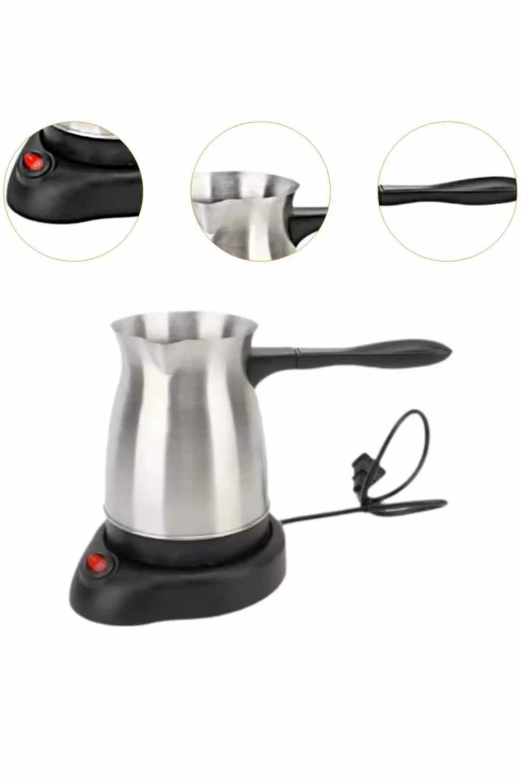 Yüksek performansı ve şık tasarımıyla dikkat çeken bu elektrikli cezve, 800 watt gücü ile mükemmel Türk kahvesi pişirir. 360 ml kapasitesi ile 6 fincana kadar kahve hazırlama imkanı sunar, böylece kalabalık misafirlerinize kolayca lezzetli kahveler ikram edebilirsiniz. Gizli rezistans teknolojisi sayesinde daha hızlı ısınma sağlarken, güvenli kullanım sunar ve temizlik açısından büyük kolaylık sağlar.360 derece dönebilir kablosuz tabanı, kullanım sırasında rahatlık ve esneklik sağlar. Paslanmaz çelikten üretilmiş olan cezve, dayanıklı ve uzun ömürlüdür, aynı zamanda şık bir görünüm sunar. Kolayca temizlenebilen tasarımı, hijyenik bir kullanım sağlar ve her seferinde taze kahve hazırlamanızı mümkün kılar.Kırmızı güç düğmesi ile açma ve kapama işlemleri kolayca yapılabilir. ısınmayan ve ergonomik tasarıma sahip kulpu ise güvenli bir kullanım sağlar. Paslanmaz çelik gövde, hem dayanıklılığı hem de modern görünümüyle mutfağınıza zarif bir dokunuş katar.Bu elektrikli cezve, mükemmel kahveler hazırlamak isteyenler için mükemmel bir seçenek olup, hem işlevsel hem de estetik açıdan mutfağınıza modern bir dokunuş ekler. 6 fincana kadar kahve hazırlayabilmesi ile kalabalık misafirler için de ideal bir tercihtir.