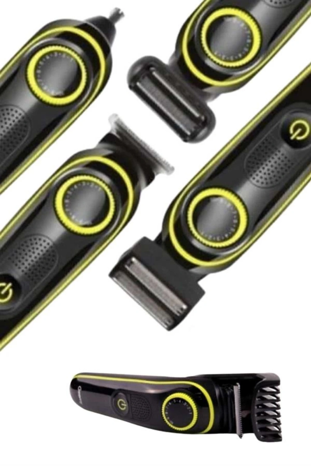 Bu 5'i 1 arada çok fonksiyonlu bakım seti, kişisel bakım rutininizi daha pratik ve etkili hale getiriyor. Saç kesimi, sakal tıraşı, burun ve kulak kılı temizliği, detaylı şekillendirme ve vücut tıraşı gibi birden fazla işlevi tek cihazda sunarak, tam kapsamlı bakım imkanı sağlıyor. Güçlü motoru ve paslanmaz çelik bıçakları ile pürüzsüz bir tıraş deneyimi sunarken, uzun ömürlü ve keskin yapısı sayesinde her kullanımda yüksek performans elde edebilirsiniz. Kablosuz ve şarjlı kullanımı sayesinde hareket özgürlüğü tanır; tam dolu batarya ile uzun süreli kullanım imkanı sunar. Farklı kesim uzunlukları için ayarlanabilir tarak başlıkları mevcuttur; bu sayede kişisel stilinize uygun şekillendirmeyi zahmetsizce gerçekleştirebilirsiniz. Ergonomik tutuşa sahip şık ve modern tasarımı, hem kullanım kolaylığı sağlar hem de banyo alanınıza estetik bir katkı sunar. Üzerindeki LED gösterge, pil seviyesini anlık olarak takip etmenize olanak tanırken, düşük sesli çalışması ile her ortamda konforlu bir kullanım deneyimi yaşatır. Suya dayanıklı başlıkları ve çıkarılabilir bıçakları sayesinde temizlik işlemleri oldukça kolaydır; hijyenik kullanım için yalnızca düzenli olarak yıkamanız yeterlidir.