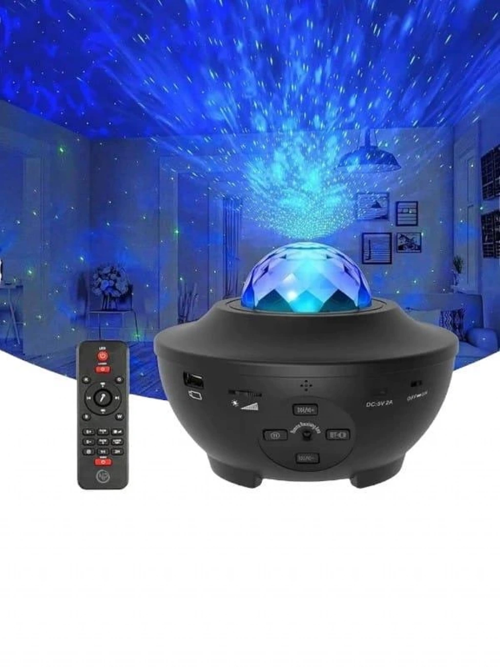 * 10 renk dinamik projeksiyonlar: beş standart renk, kırmızı su dalgası, mavisu dalgası, yeşil su dalgası, beyaz su dalgası ve yeşil lazer noktası, her ikirenk karıştırılabilir ve her iki su dalgası rengi de yeşil lazer noktası ilekarıştırılabilir, Böylece en fazla 10 renk alabilirsiniz. Size muhteşem biryıldızlı ışık göstermek için, farklı hızların dinamik gece projeksiyonu ilekombine çeşitli renkler, rahat, romantik, renkli bir uzay projeksiyon ortamıyaratmak.* Uzaktan kumanda ve müzikal: uzaktan kumanda ile (2XAAA pil kullanın-dahildeğildir), gece ışığını açmak veya kapatmak için yataktan veya kanepedençıkmaktan endişelenmenize gerek yok, uzaktan da yıldız projektör ışık kontroledebilirsiniz, renkli ışıklar, parlaklığı ayarlamak, serbestçe açmak/kapatmaklamba, aydınlatma modunu değiştirmek, Müzik şarkıları, zamanlayıcı. En son sesetkinleştirilmiş titreme modu, projeksiyonun rengi müzik ritmine göredeğiştirmesini veya ellerinizi çırpmasını sağlar ve bu da yıldızlı birprojeksiyon ile sonuçlanır.* Bluetooth hoparlörler ve zamanlayıcılar: favori müziğinizi Bluetooth veya USBüzerinden seçebilirsiniz. Yüksek kaliteli müzik ve yıldızlı projeksiyonlar geceromantik ve yatıştırıcı bir ortam yaratır. Zamanlayıcı seçeneği daha enerjiverimli, ayrıca tüm gece ışığını da atabilirsiniz.* Otomatik kontrol zamanlayıcısı: dinamik bulutsu'nun yıldız projektör ışıkdahili 1H, 2H, otomatik kapanma zamanlayıcısı, gece ışık projektör projektörışık önceden ayarlanmış süreden sonra otomatik olarak kapanacaktır. Ve tabiiki, zamanlayıcı tüm gece boyunca kalmak için iptal edilebilir.* Aile ve çocuklar için hediyeler: yıldız projektör gece lambası doğum günüiçin uygundur, parti, düğün, oda dekor, çocuk günü, noel, yıldönümü hediyeler,harika ve yıldızlı bir atmosfer yaratır, çocukların meraklarını, hayal gücünü,yaratıcılıklarını teşvik etmelerine yardımcı olur. Ayrıca bir okyanus dalgasıprojektör, romantik ruh ışık, gece lambası ve başucu lambası olarak içdekorasyon için mükemmelleştirir.* Müzik yıldızlı gece ışık projektör: yıldızlı gece lambası, bebekler için iyibir uyku ortamı yaratarak, aileniz veya arkadaşlarınız için unutulmaz bir gecegösteren, duvarlara ve tavana gerçekçi bir yıldızlı gece yansıtabilir.
